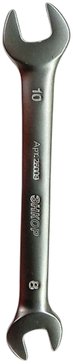 Хромированное покрытие защищает от ржавчины и придаёт инструменту аккуратный, профессиональный вид. Точный профиль зевов плотно обхватывает грани гаек и болтов, предотвращая их повреждение и проскальзывание. предназначен для монтажа и демонтажа резьбовых соединений размером 8 и 10 мм. Инструмент отличается высоким качеством исполнения и надежностью в эксплуатации.