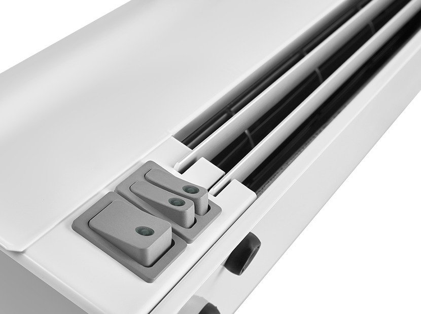 Завеса работает в трех режимах тепловой мощности – «режим вентиляции», «половина мощности», «полная мощность». Переключение между режимами осуществляется при помощи пылевлагозащищенных клавиш со световой индикацией работы, которые расположены на корпусе завесы. Долговечное полимерное покрытие белого цвета и антикоррозийная обработка корпуса обеспечивает сохранность внешнего вида оборудования на весь срок эксплуатации.