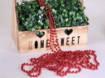 Украшение используется для декора помещений, применяется в создании разнообразных новогодних композиций, а так же для создания оригинального дизайна на новогодних праздниках. Бусы новогодние красного цвета станут универсальным украшением при подготовке вашего дома к празднику и для создание волшебной и уютной атмосферы в доме.