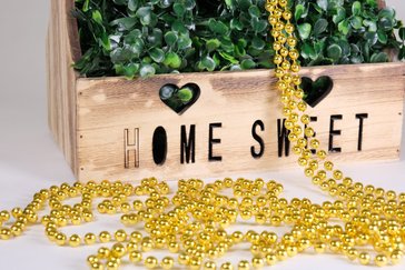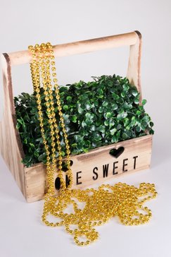Украшение используется для декора помещений, применяется в создании разнообразных новогодних композиций, а так же для создания оригинального дизайна на новогодних праздниках. Бусы новогодние золотого цвета станут универсальным украшением при подготовке вашего дома к празднику и для создание волшебной и уютной атмосферы в доме.