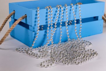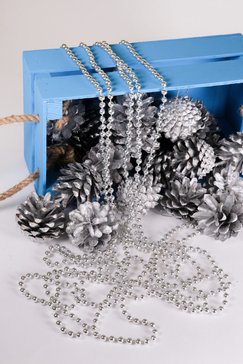 Украшение используется для декора помещений, применяется в создании разнообразных новогодних композиций, а так же для создания оригинального дизайна на новогодних праздниках. Бусы новогодние серебряного цвета станут универсальным украшением при подготовке вашего дома к празднику и для создание волшебной и уютной атмосферы в доме.