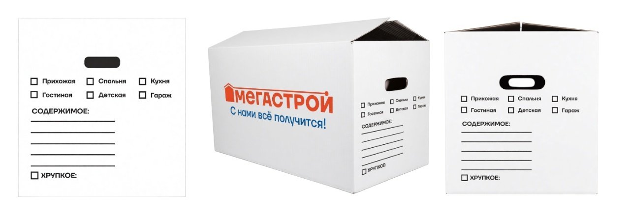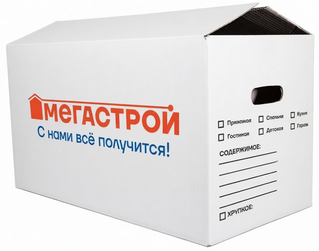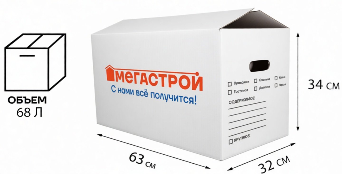 - Коробка картонная Мегастрой 63х32х34см усиленная, белая