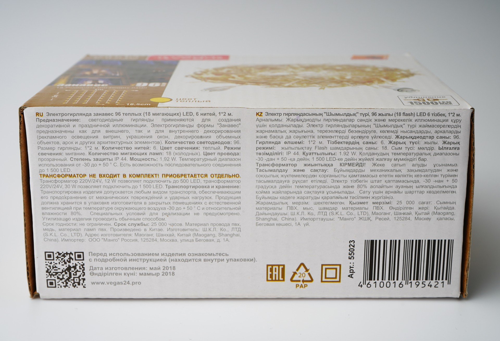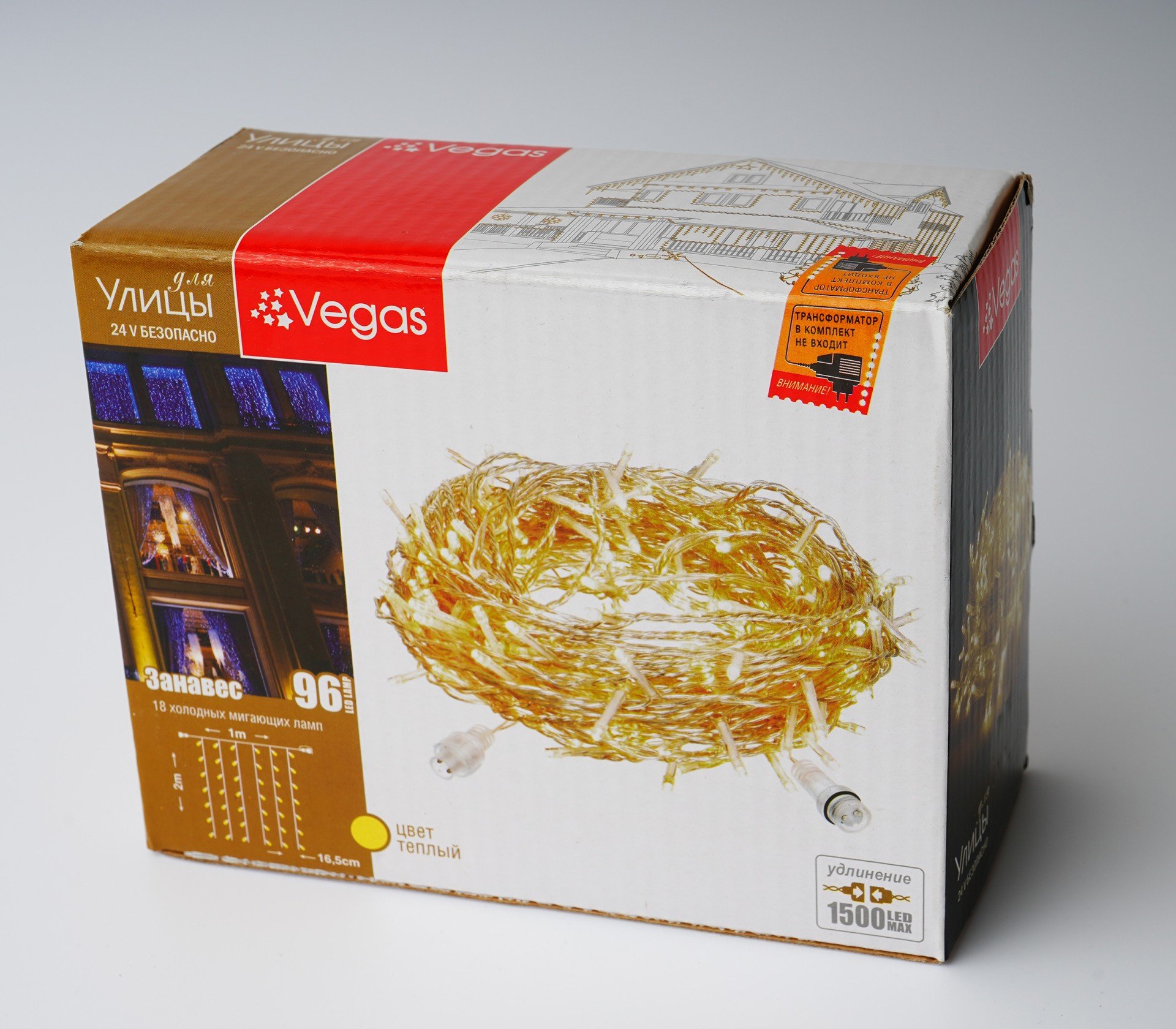 - Электрогирлянда-конструктор Занавес 96 теплых LED ламп (18 мигающих) 6 нитей 1х2м VEGAS