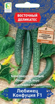 -40%Отличные вкусовые качества сорта огурец Любимец Конфуция F1 или по-другому «Восточный деликатес», считается одним из популярных в выращивании у дачников. Ценится за продуктивность и скороспелость. линноплодность овоща. Каждый огурец имеет огромные размеры. Длина бывает в интервале 50-80 сантиметров. Если гиганта выращивать на шпалере, в теплице в подвязанном состоянии, то немудрено вырастить и более длинный экземпляр, так как в этом плане его возможности безграничны.