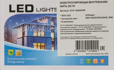 - Электрогирлянда внутренняя Нить 30м 300LED IP20, 220V, холодный белый, контролер 8 режимов, SYD-1624011A