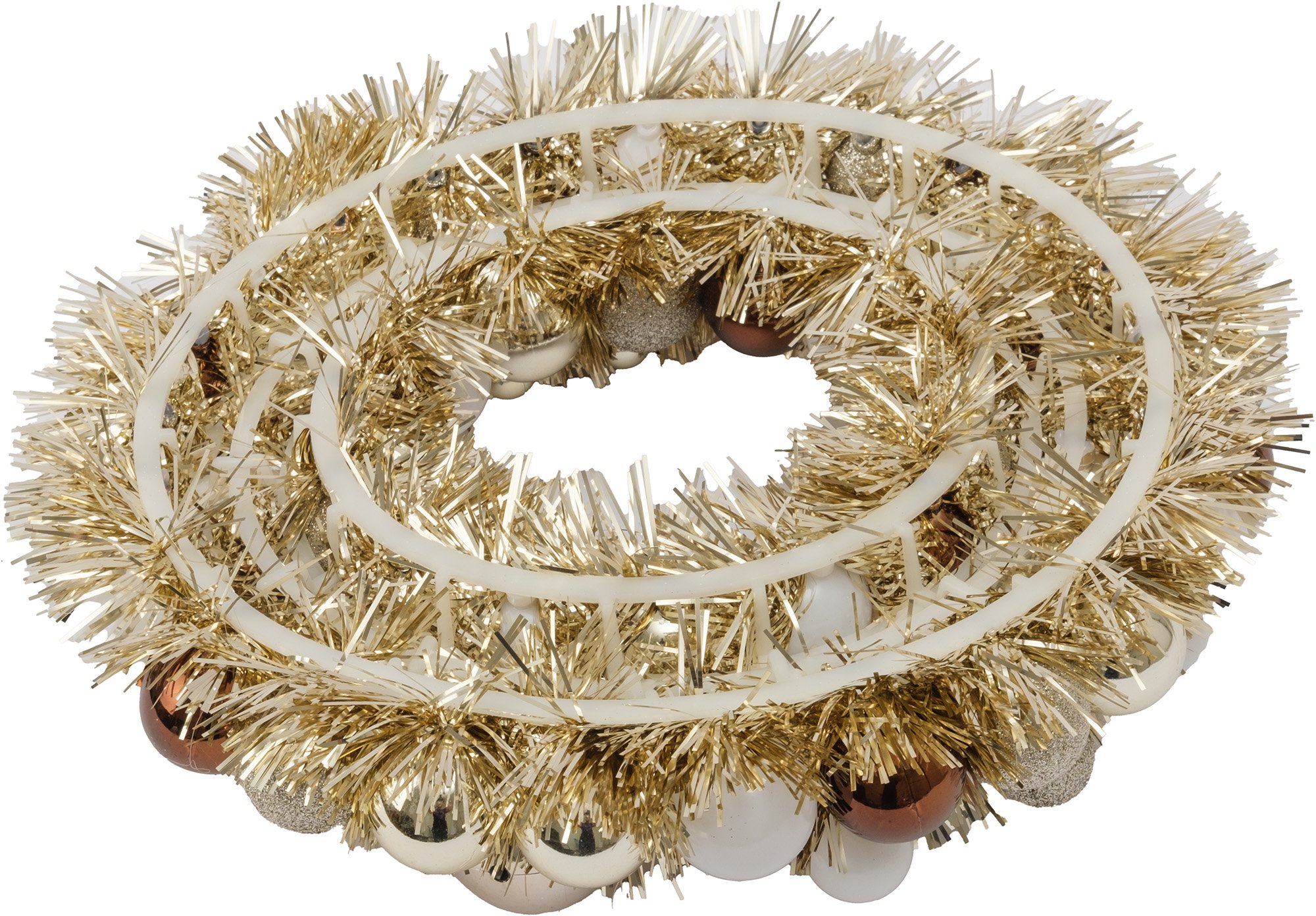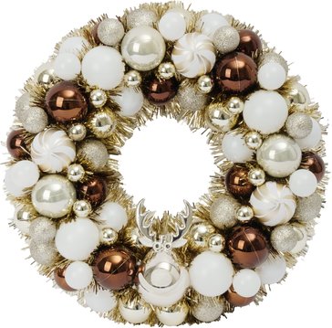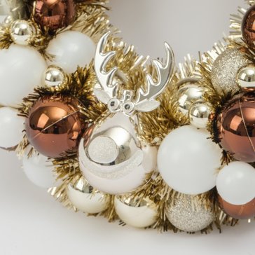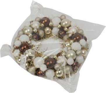 - Венок новогодний из мишуры 35см с белыми и коричневыми шарами ПЭТ, SYQH-0124008