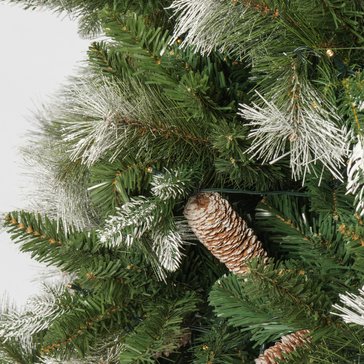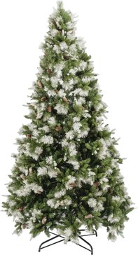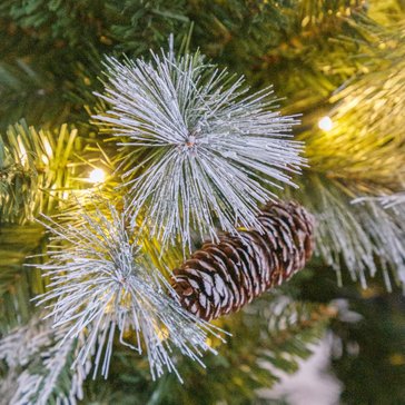 натуральный зеленый цвет хвои с эффектом легкой заснеженности, с шишками, LED-подсветка, теплый белый свет