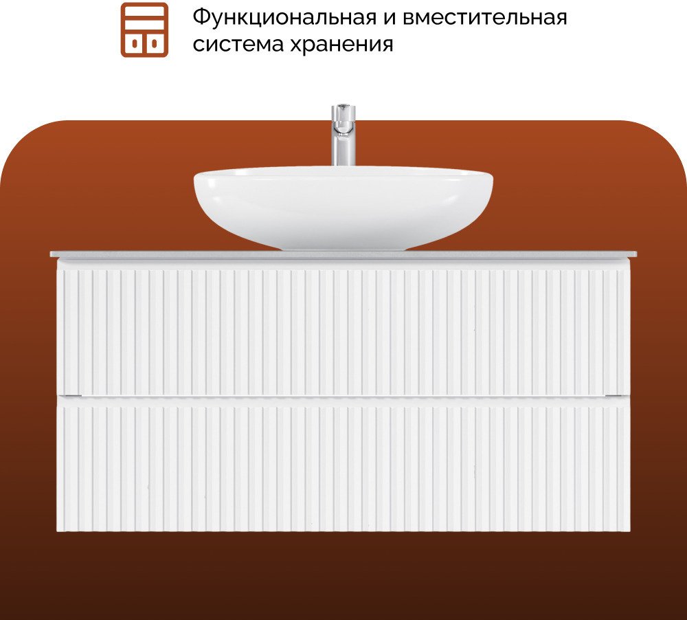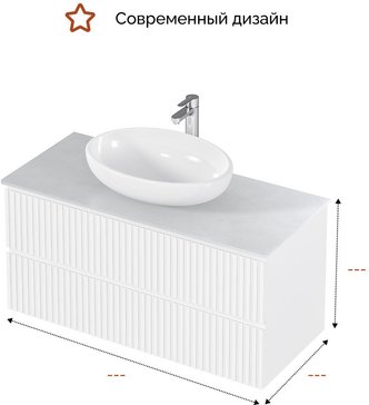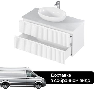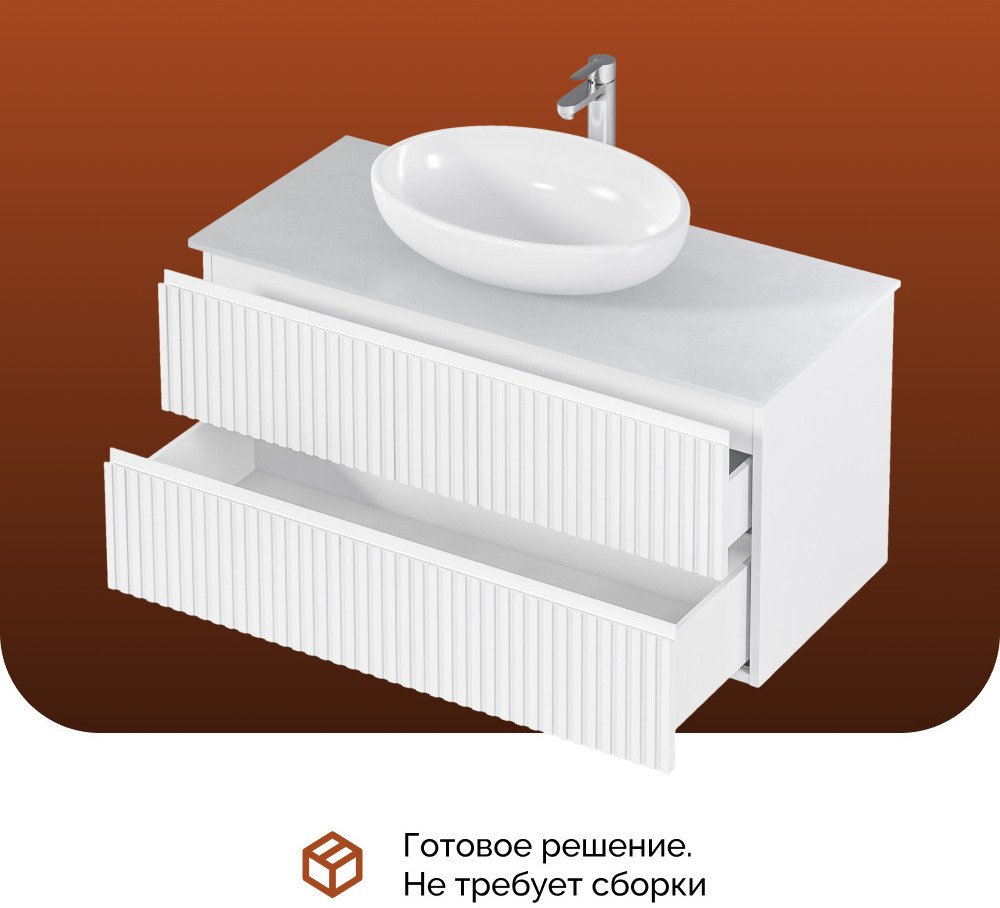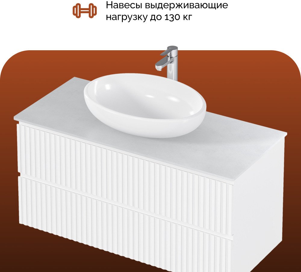 - Тумба подвесная MIX 100см белая/relief white со столешницей из керамогранита