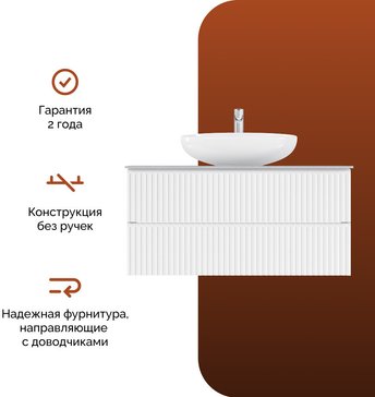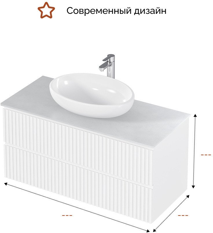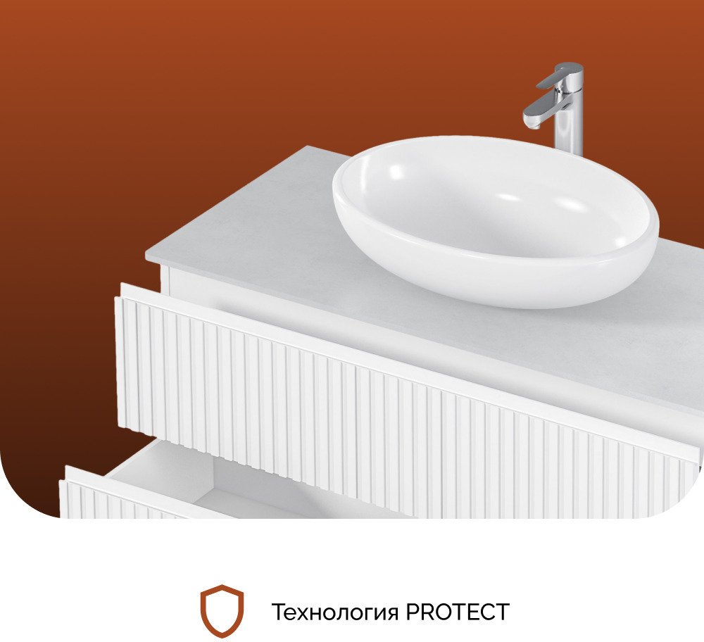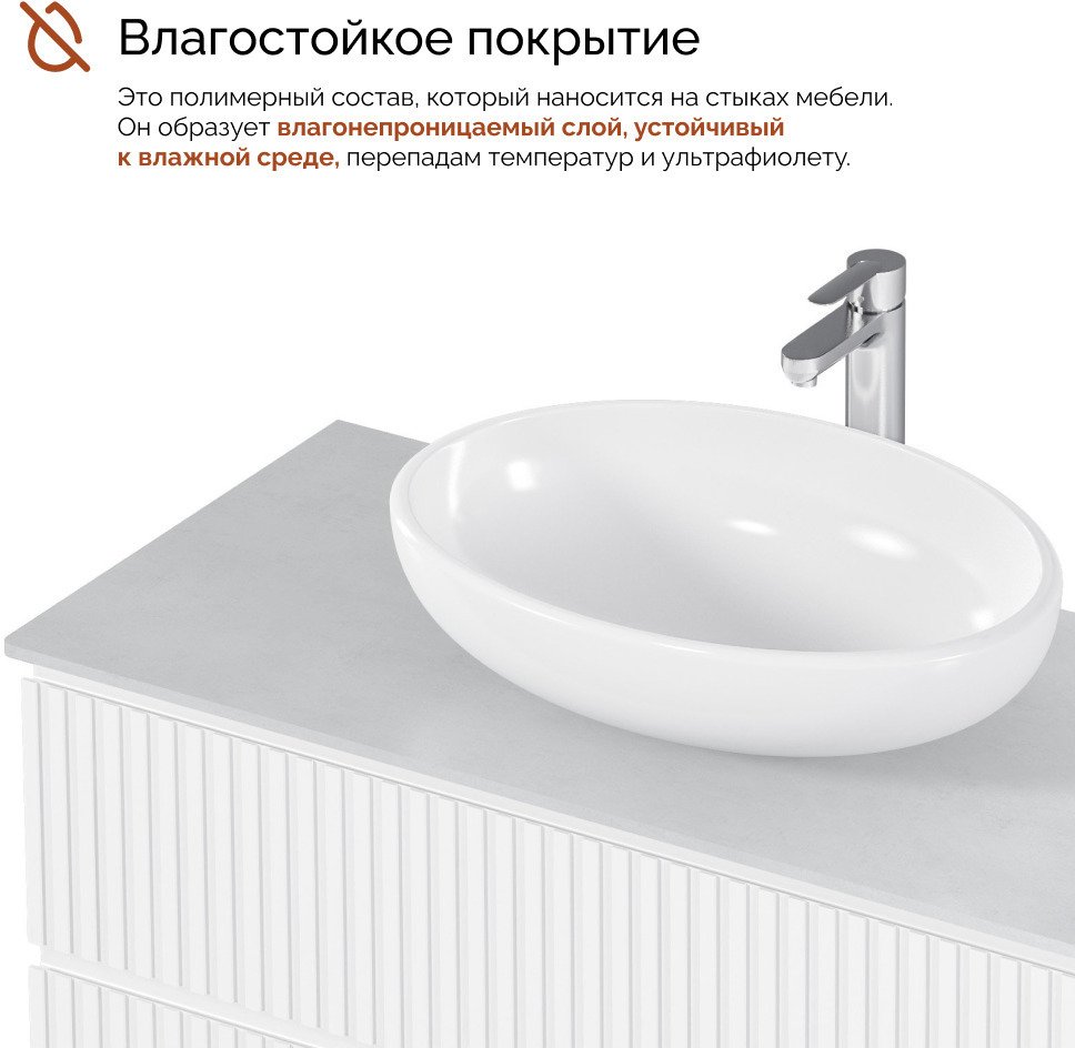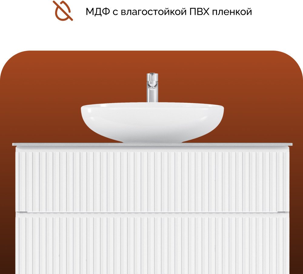 - Тумба подвесная MIX 100см белая/relief white со столешницей из керамогранита