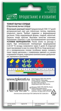 -30%Самый вкусный салатный сорт. Сорт позднеспелый, высокоурожайный, для открытого грунта и пленочных теплиц. Растение высокорослое, высота главного стебля 160-200 см. Плоды крупные, красные, при первом сборе массой до 400 г, при последующих до 100 г, мясистые, удлиненно-овальной формы (напоминают форму сердца), удивительно вкусные и сочные. Рекомендуется для употребления в свежем виде.