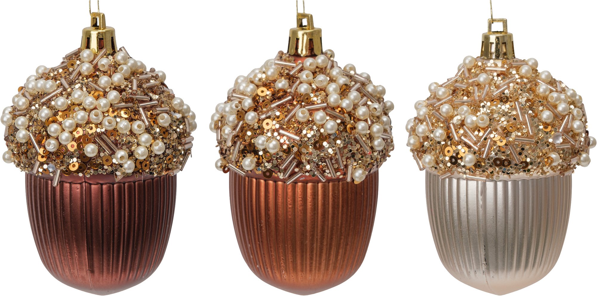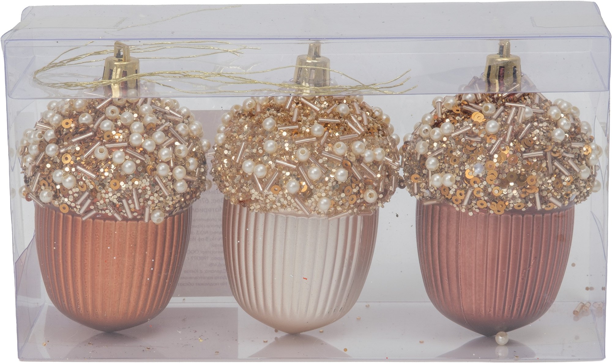 - Набор украшений Желуди 3шт 6см, кофе+шампань, SYQD1-0125231