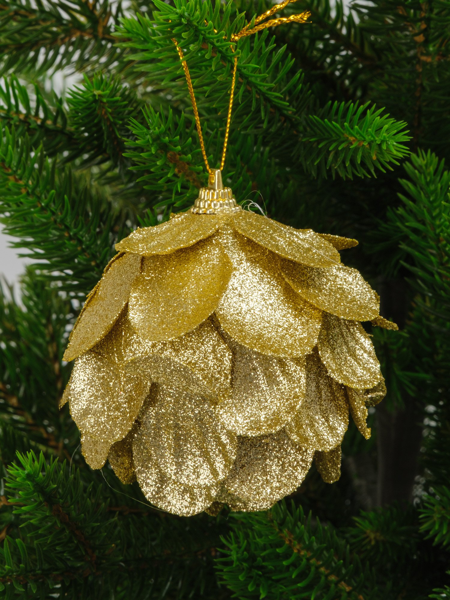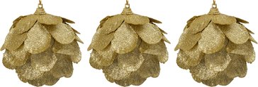 Представляем изысканный набор из трёх золотых украшений в форме артишоков, которые станут настоящим украшением вашей новогодней ёлки или праздничного интерьера.