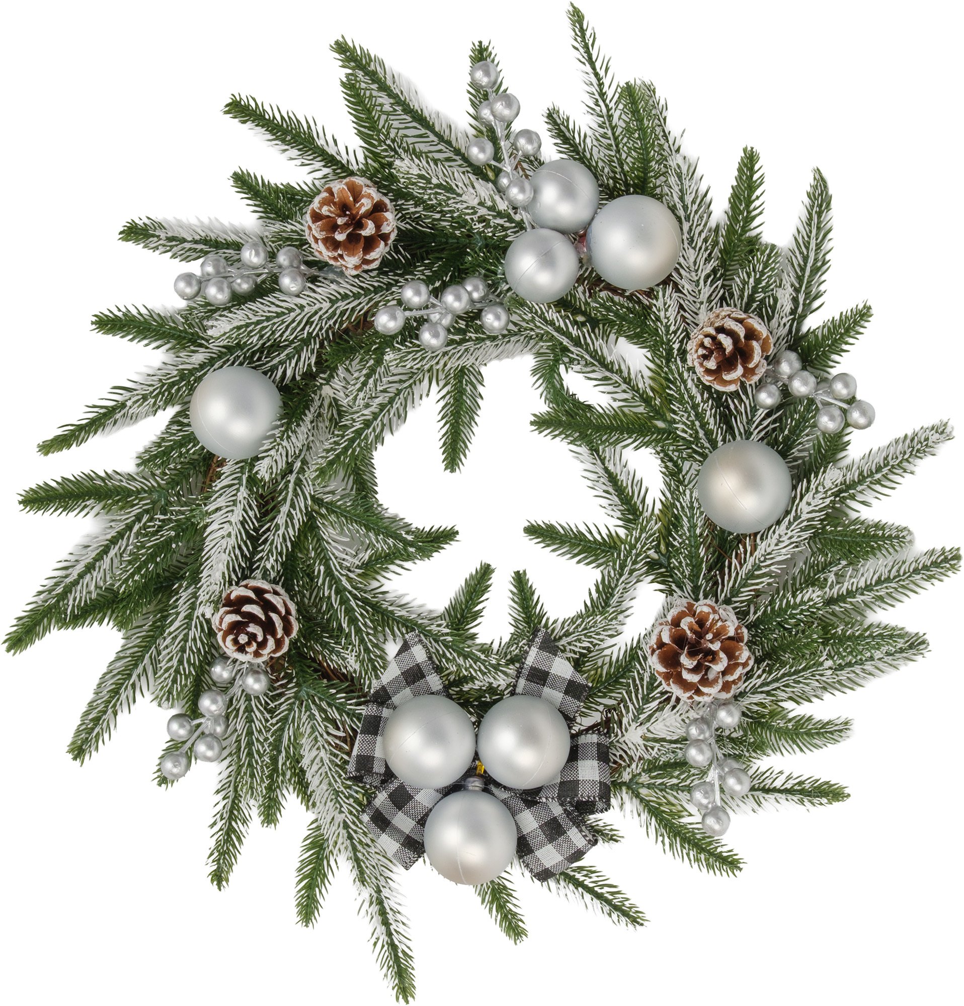 - Венок новогодний 30см с серебрянными шарами и шишками ПЭ SYHH-0925321