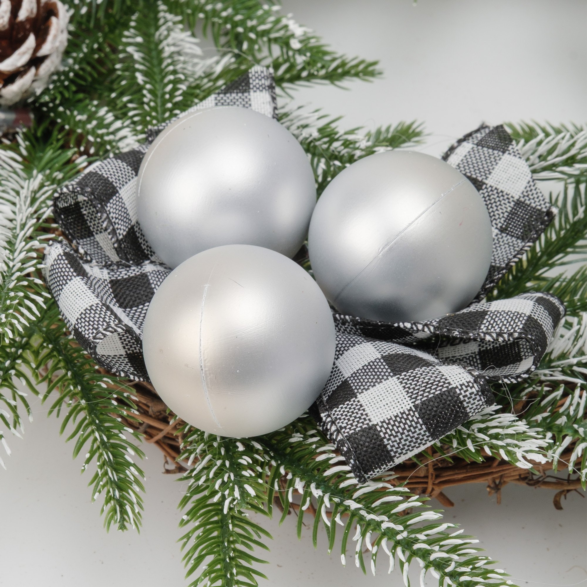 Диаметр 30 см — идеальный размер для любого интерьера. Натуральные ветви ели, украшенные сверкающими серебряными шарами и изящными шишками, создают неповторимый образ зимней сказки.