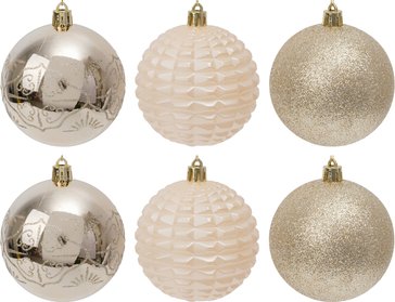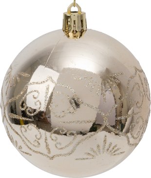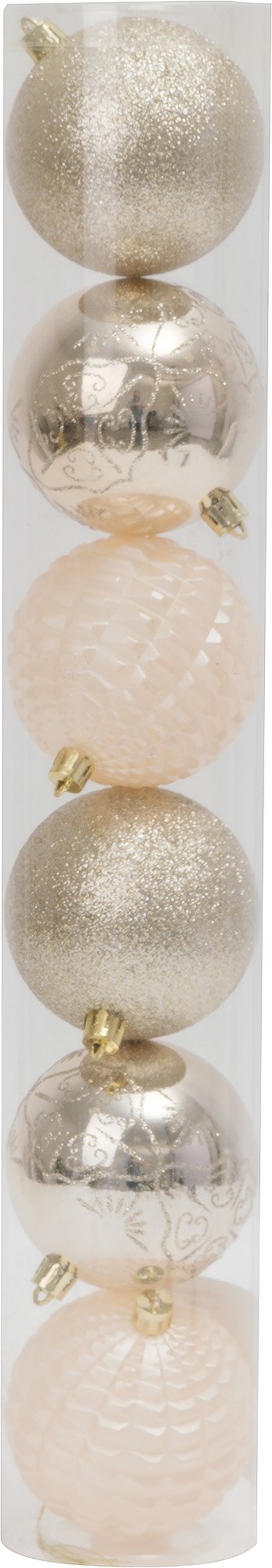 Особенности набора: Размер шаров: 8 см — идеальный диаметр для создания гармоничной композиции Количество: 6 штук — достаточно для эффектного оформления Прочное покрытие: гарантирует долговечность и сохранение первоначального блеска Универсальность: прекрасно сочетаются с игрушками любых оттенков