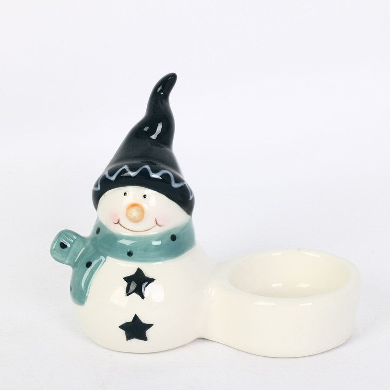 - Фигурка керамическая Снеговичок 9,5см, бело-голубой, SYTCC-3825017