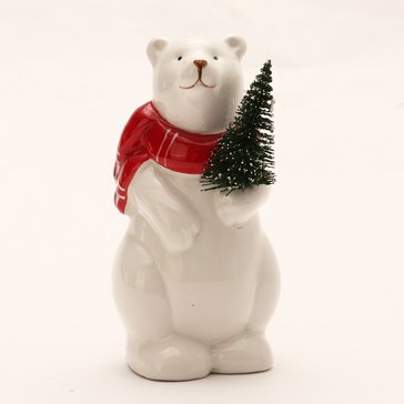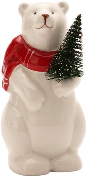 - Фигурка керамическая Медведь с елочкой 14см, красно-белый, SYTCB-3825125