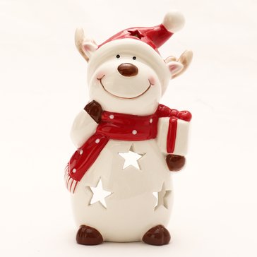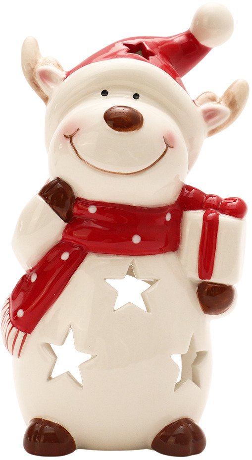 - Фигурка керамическая Олень с подарком 14см, красно-белый, SYTCB-3825149