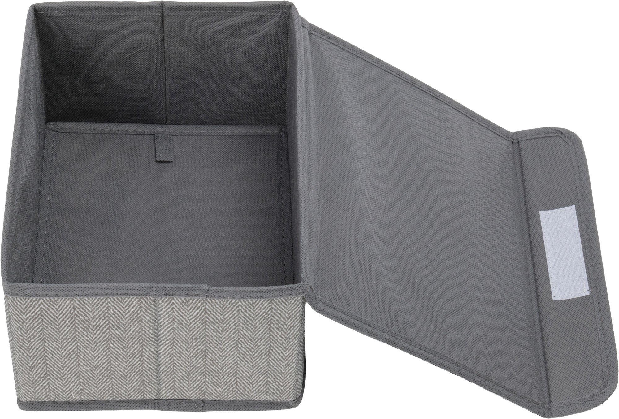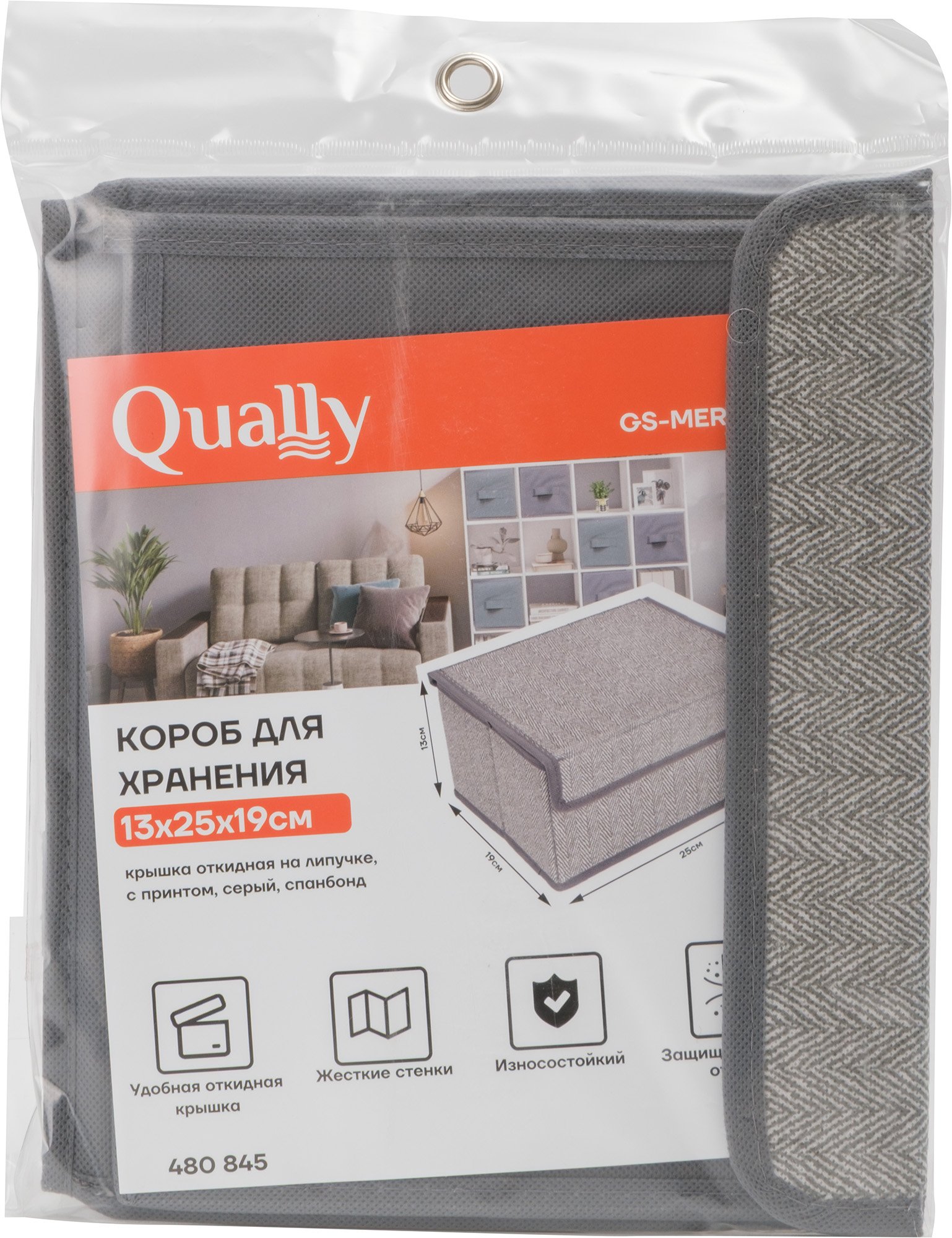 - Короб д/хранения Qually 13х25х19см крышка откидная на липучке, с принтом, серый, спанбонд
