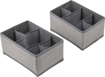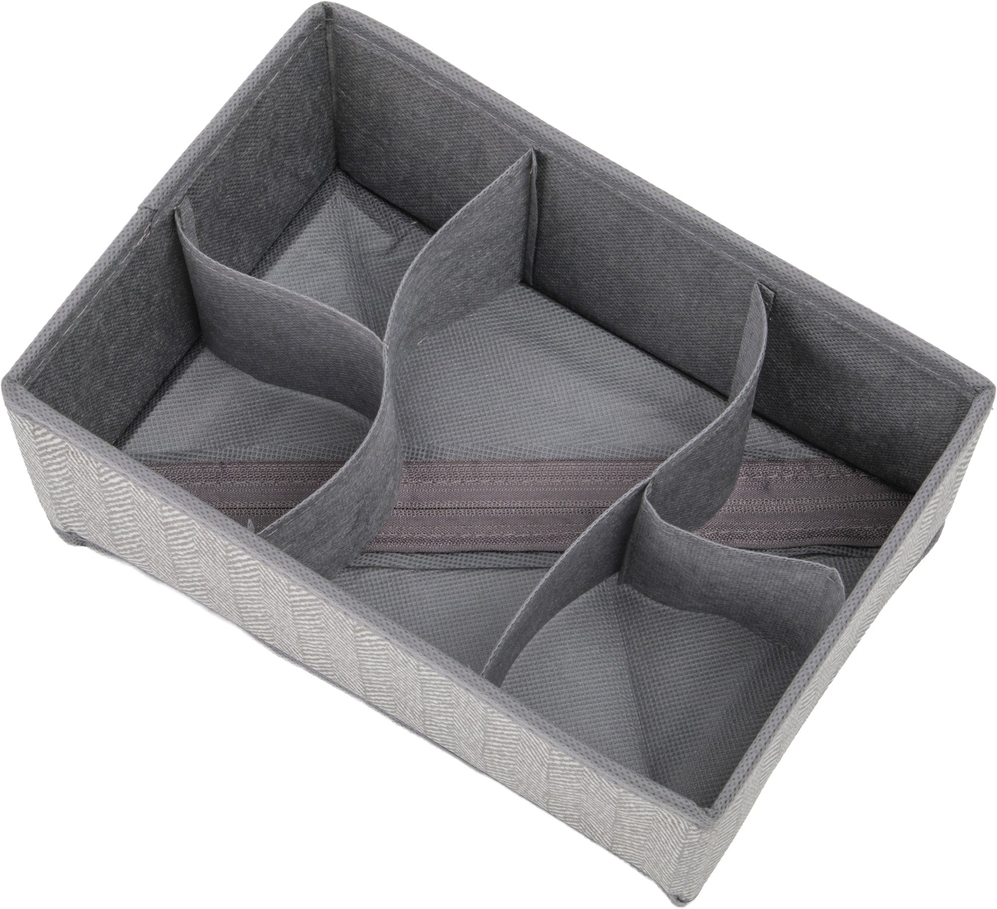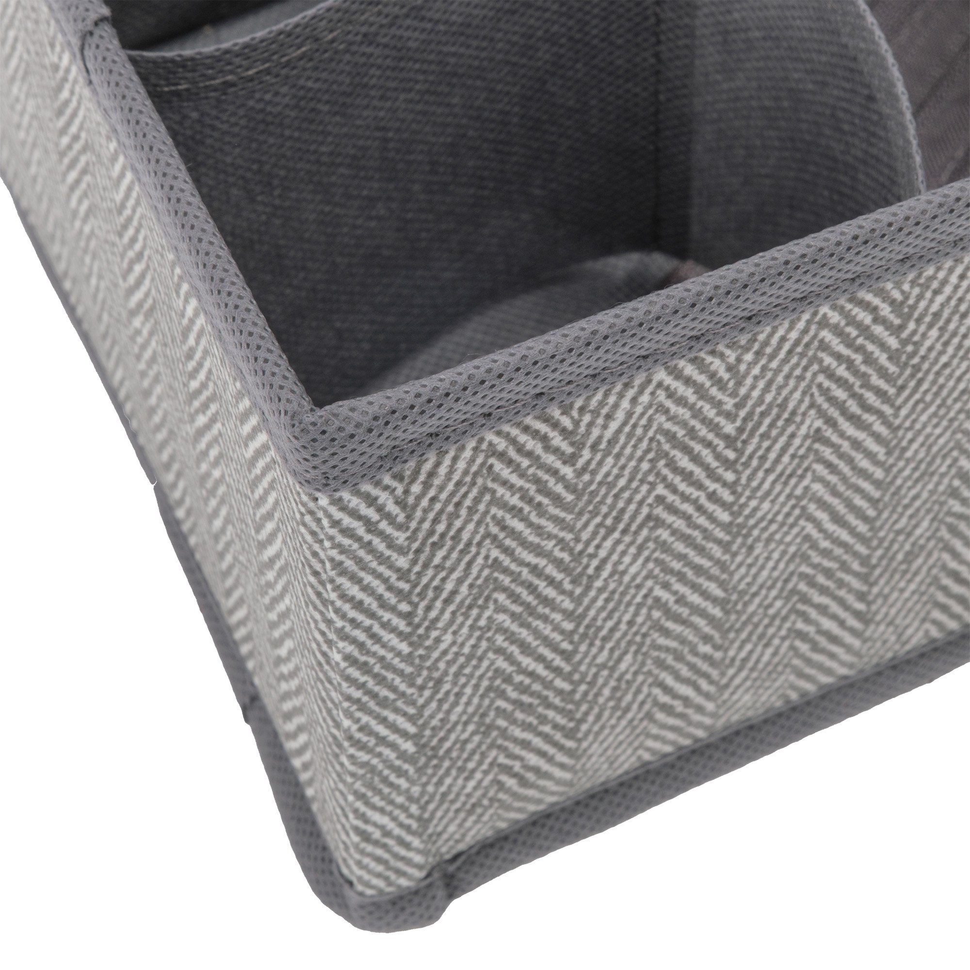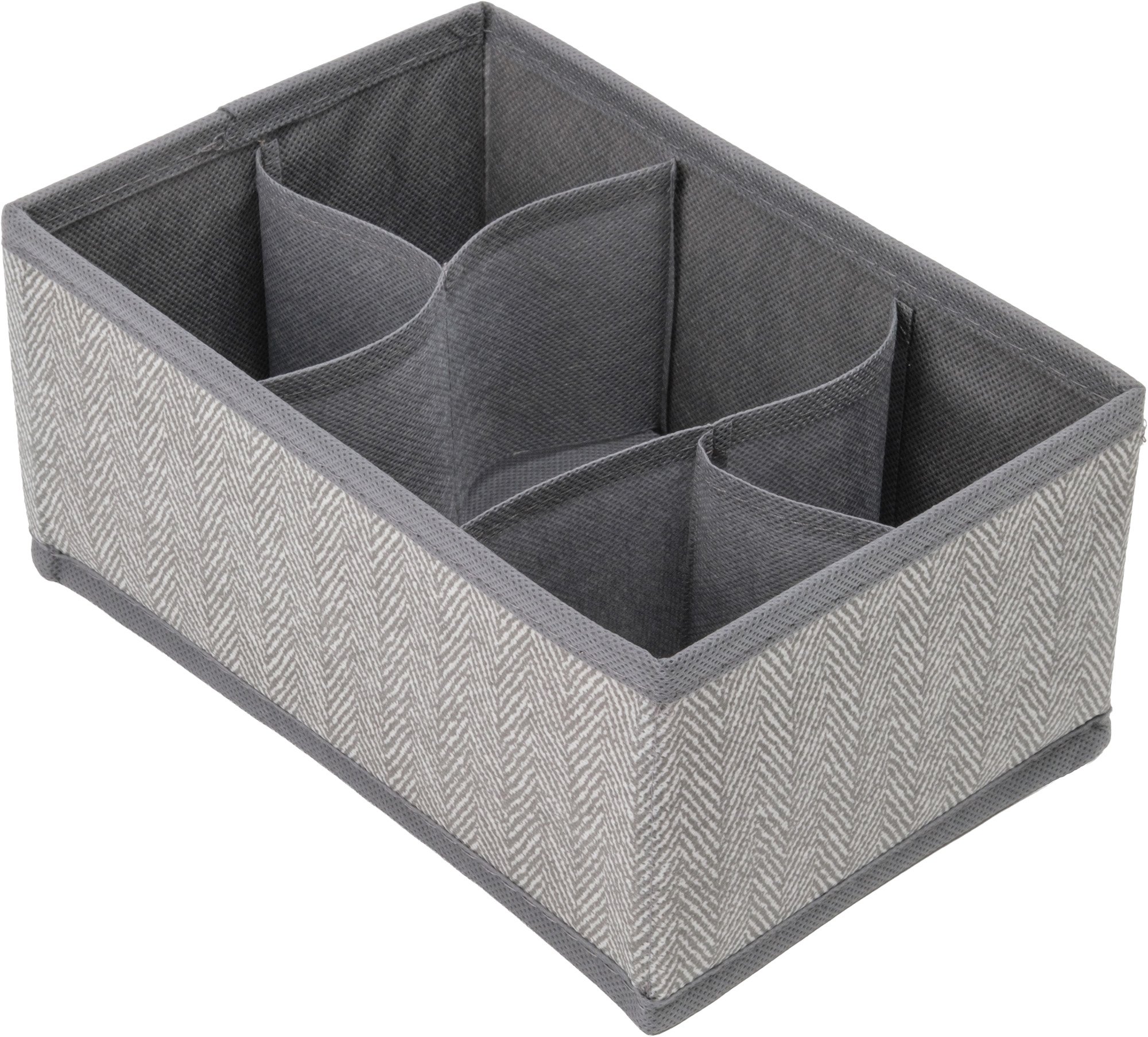Идеален для белья, галстуков, носков. Удобная система складывания внутренних перегородок позволяет организовать внутреннее пространство в соответствии с вашими потребностями. Легко складывается. Занимает мало места в сложенном виде. Благодаря текстуре "под твид" и стильному дизайну органайзер идеально подойдет для любого гардероба.