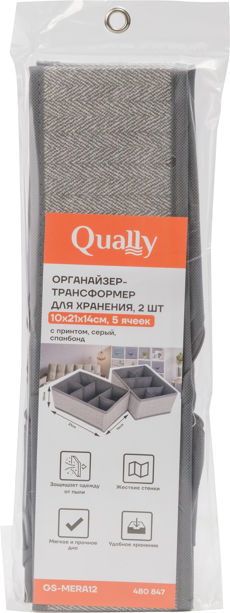 - Набор органайзеров-трансформеров д/хранения Qually 10х21х14см 5 ячеек с принтом, серый, спанбонд 2шт