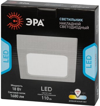- Светильник светодиодный ЭРА LED 20-18-4K накладной квадратный 18Вт 4000К