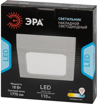 - Светильник светодиодный ЭРА LED 20-18-6K накладной квадратный 18Вт 6500К