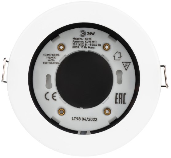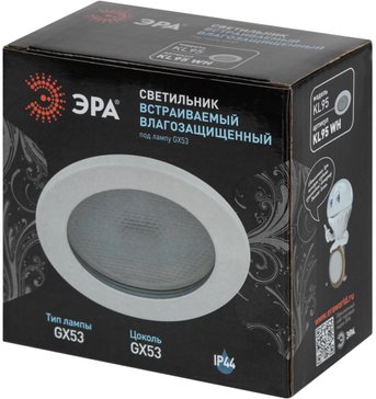 - Светильник встраиваемый влагозащищенный ЭРА KL95 WH GX53 IP44 белый