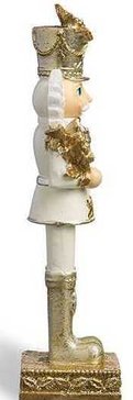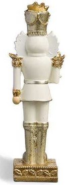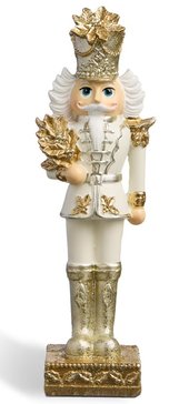 В белом мундире с изящными золотыми узорами, увенчанный короной и лавровым венком, Щелкунчик выглядит как настоящий сказочный персонаж со сцены знаменитого балета. Благодаря компактным размерам статуэтка идеально впишется в любой интерьер — будь то полка, камин или праздничный стол.