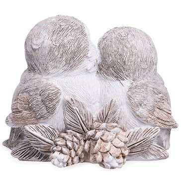 Изготовленная из высококачественного полистоуна, фигурка обладает приятной фактурой и благородным состаренным оттенком, который идеально впишется как в классический, так и в скандинавский интерьер. В основании — декоративные шишки и листья, добавляющие естественности и природного шарма.