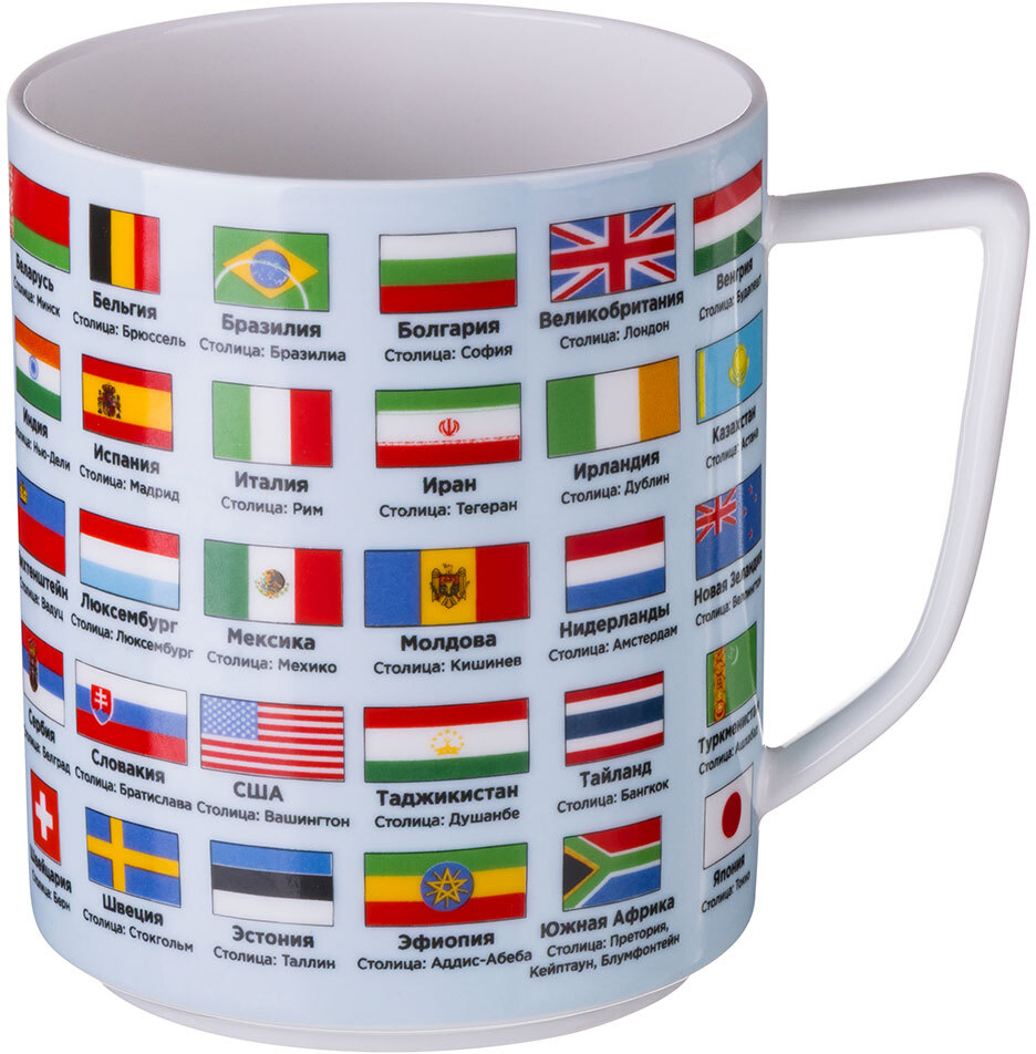 Откройте для себя мир без границ прямо у себя на кухне. Эта элегантная фарфоровая кружка объёмом 630 мл украшена яркими изображениями флагов разных стран — словно карта захватывающих приключений, которая всегда под рукой.