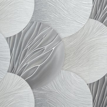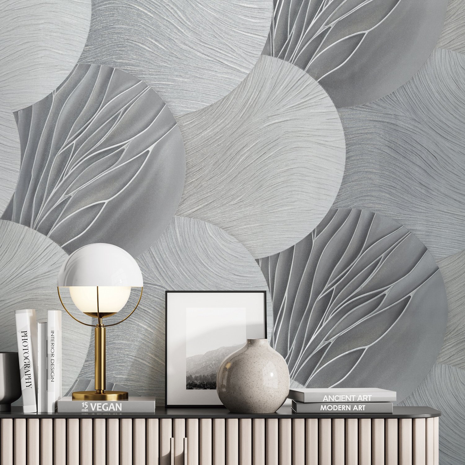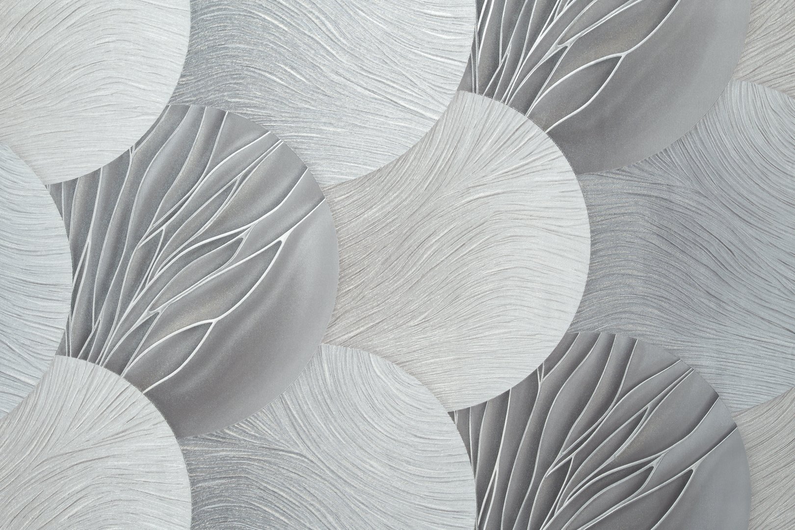 Современные тренды и космическая эстетика в коллекции обоев "Альто". Выразительные круги-планеты с 3D эффектом выполнены в объёмном тиснении. Каждый элемент обладает особой глубиной и текстурой, создавая игру свето-тени.
