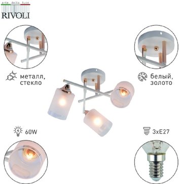 - Люстра Rivoli Tammy 3162-303 3хЕ27 60Вт модерн