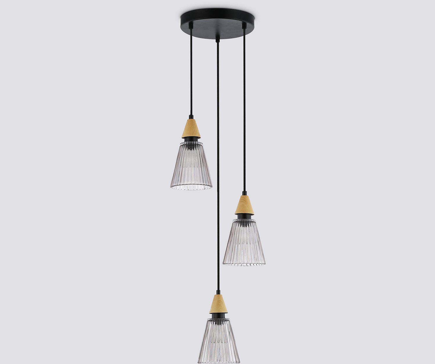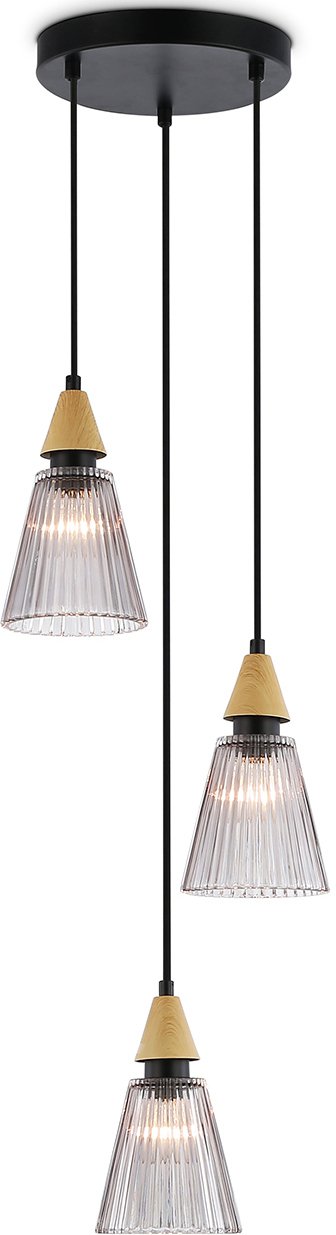 - Светильник подвесной LH58112/3 BK/LW/SM черный/светлое дерево/дымчатый E14х3 max 40W D270х1200мм