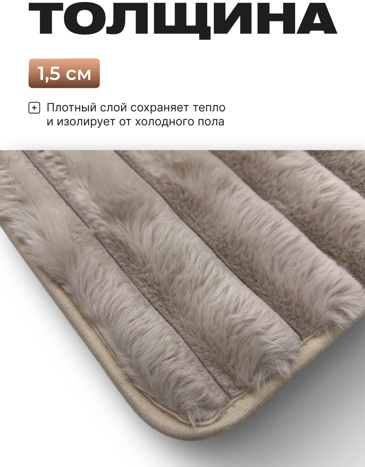 Тёплый бежевый оттенок легко впишется в любой интерьер — от спокойного минимализма до более ярких решений. Коврик словно создан для того, чтобы добавить уюта: по нему приятно ступать босыми ногами, он согревает и дарит ощущение домашнего комфорта.