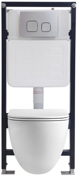 Комплект системы инсталляции Alcora Grant с унитазом Arte Tornado DPL и кнопкой смыва в матовом хроме представляет собой готовое решение для современного санузла. Он объединяет надёжную инженерную основу (инсталляцию) с эргономичным подвесным унитазом и эстетичной управляющей клавишей, создавая функциональную и визуально лаконичную композицию. Дизайн комплекта выдержан в сдержанной современной стилистике: белоснежный безободковый унитаз гармонично сочетается с матовой хромированной кнопкой, а скрытая инсталляция позволяет освободить пространство у стены. Система обеспечивает комфортное использование благодаря плавному механизму смыва и микролифту сиденья, при этом её монтаж максимально упрощён за счёт заводской совместимости всех компонентов.