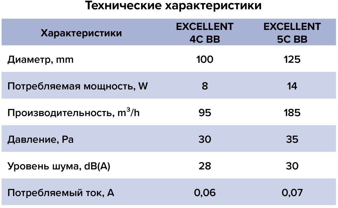 Чем отличается модель EXCELLENT 4: производительность вентилятора: 95 м³/ч — обеспечивает эффективный воздухообмен в помещении.