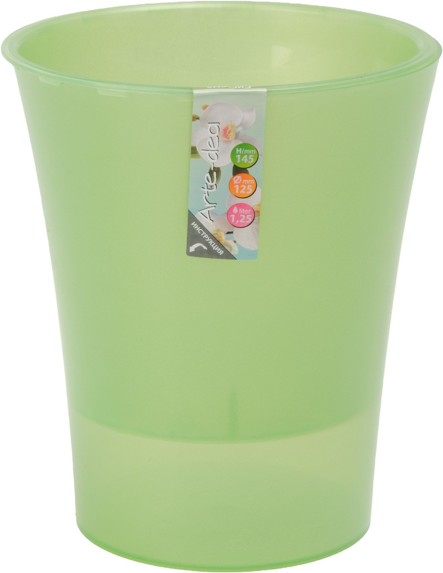 - Горшок для орхидей Арте-Дея d12,5см h14,5см v1,25л зеленое яблоко