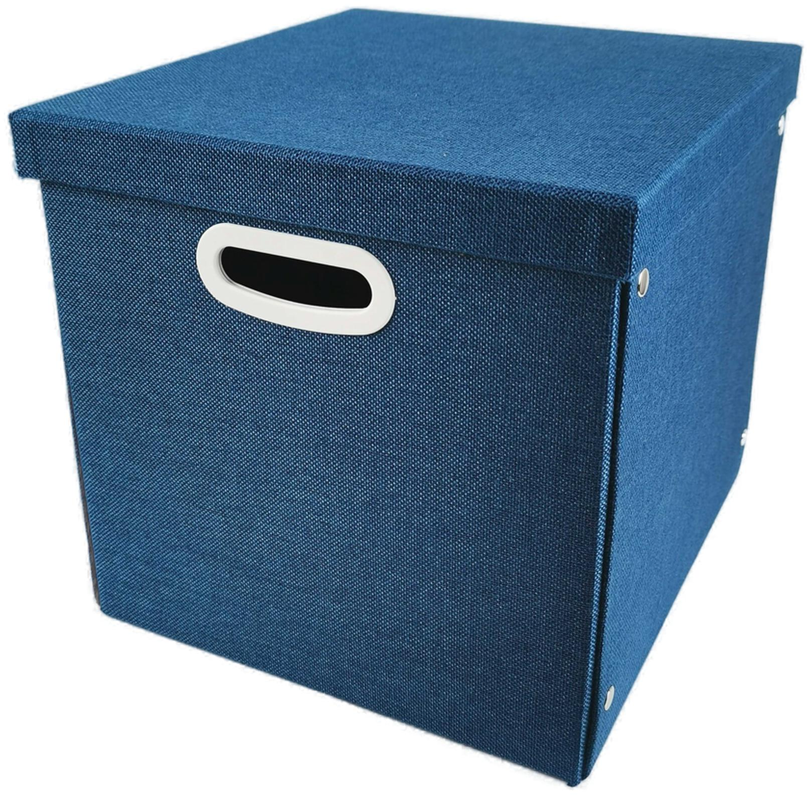 - Коробка складная Storidea 32x35x32см с крышкой, картон, ткань, синий
