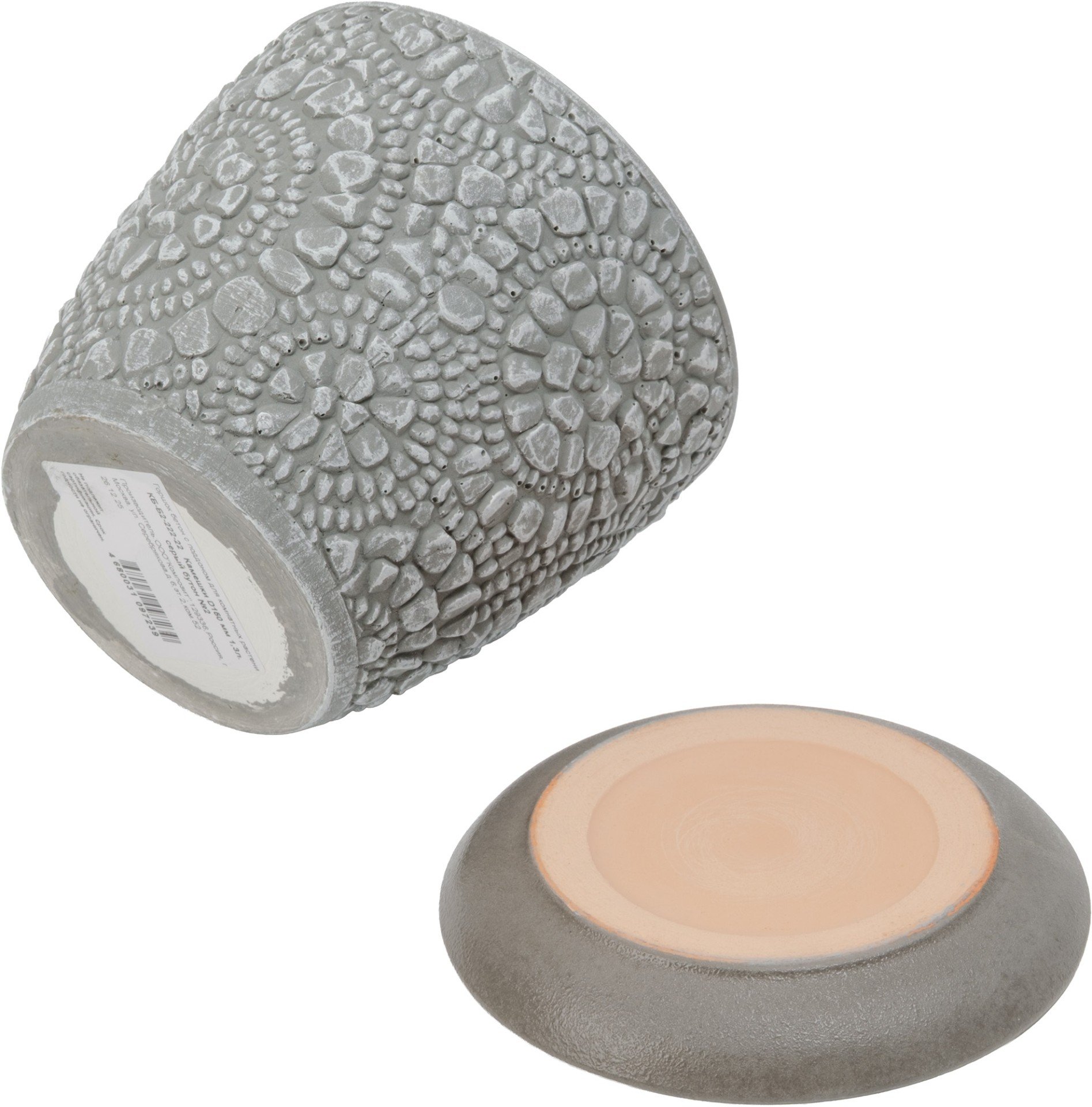 - Горшок бетонный Камешки d15см h13см v1,3л, бутон, серый