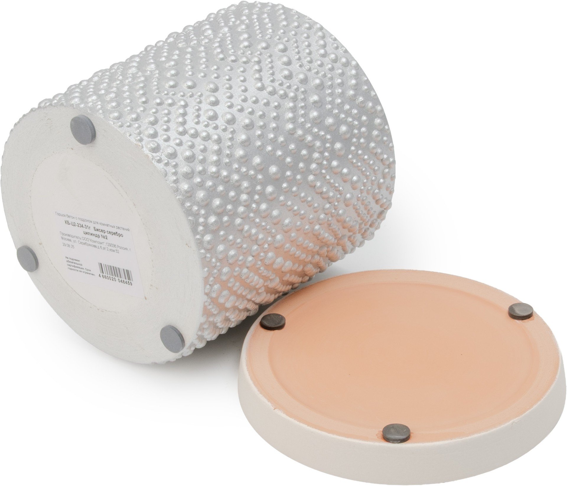 - Горшок бетонный Бисер d15см h15см v1,8л, цилиндр, серебро
