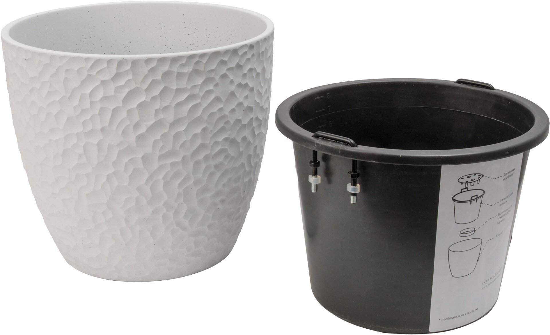 - Кашпо бетонное Манго d30см h27,8см v13л, бутон, белый, с вкладкой