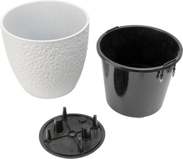 - Кашпо бетонное Манго d36,4см h33см v22л, бутон, белый, с вкладкой