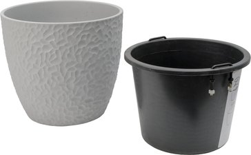- Кашпо бетонное Манго d30см h27,8см v13л, бутон, серый, с вкладкой
