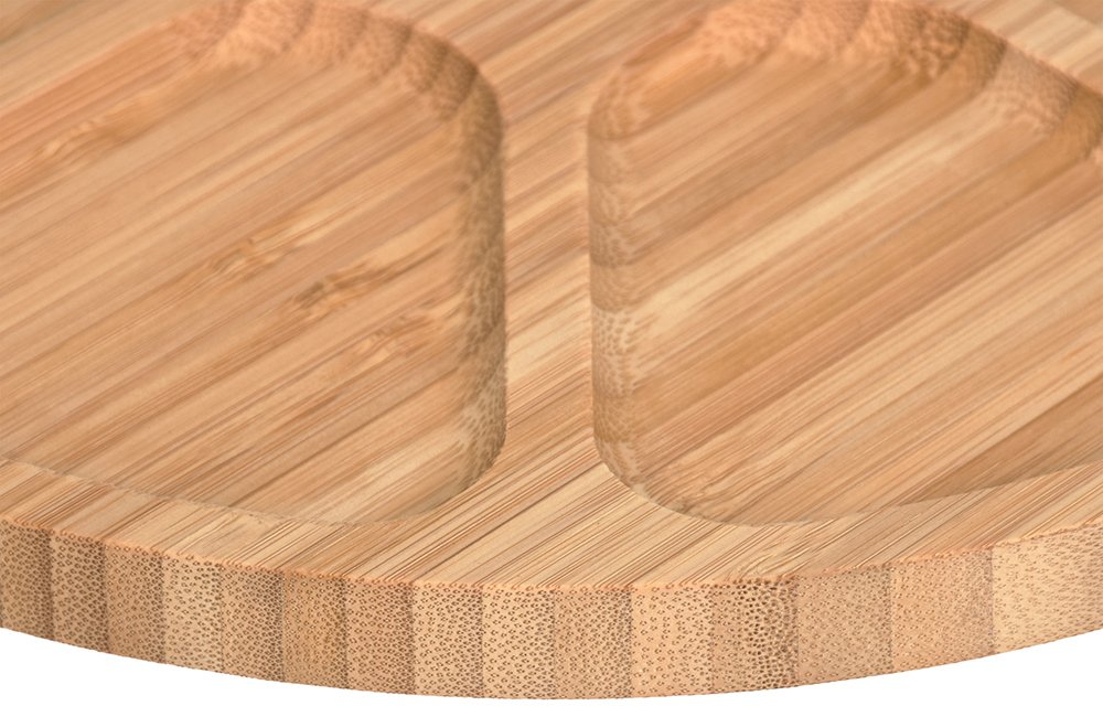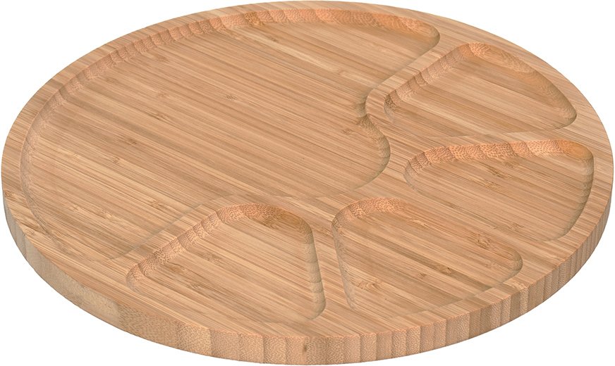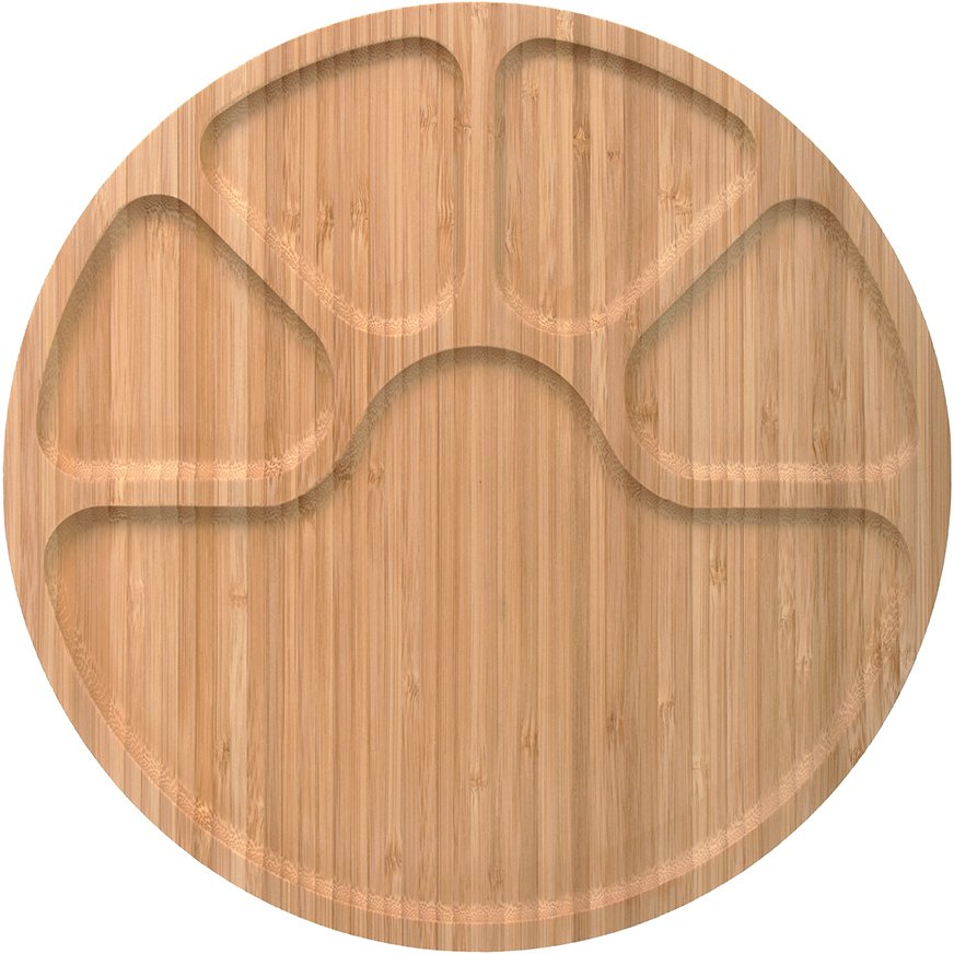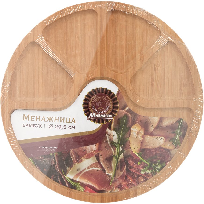 Менажница Marmiton: стиль и функциональность на вашей кухне Ищете элегантное решение для сервировки стола? Менажница Marmiton с пятью секциями — идеальный выбор для тех, кто ценит эстетику, удобство и натуральные материалы. Размеры 29,5 × 1,5 см делают её компактной, но вместительной — достаточно места для разнообразных закусок, орехов или десертов. Менажница позволяет разместить несколько продуктов в одном месте, не смешивая их между собой. Перед первым использованием изделие промыть теплой водой и вытереть насухо мягкой тканью. Не мыть в посудомоечной машине.