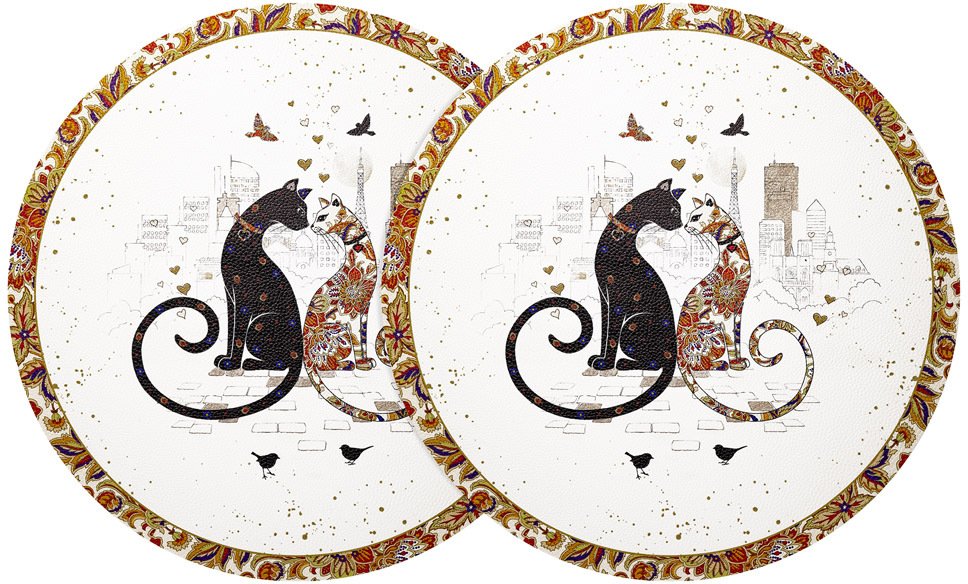 Представьте уютный парижский бистро‑кафе, где на столиках играют солнечные блики, а в воздухе витает аромат свежей выпечки. Теперь это настроение можно перенести в ваш дом с набором сервировочных салфеток Lefard «Парижские коты». Две стильные салфетки диаметром 38 см подарят вашему столу неповторимый шарм и лёгкую ноту романтики.