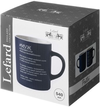 -23%Кружка Lefard «Муж» (540 мл) — солидная фарфоровая кружка, в которой гармонично сочетаются мужская практичность и изысканность премиального фарфора.