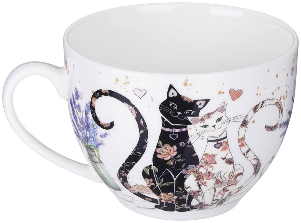 Трогательный дизайн. Нежные лавандовые оттенки и милые кошачьи мотивы создают атмосферу безмятежности и тепла. Каждый раз, беря чашку в руки, вы будете улыбаться, замечая новые детали рисунка.