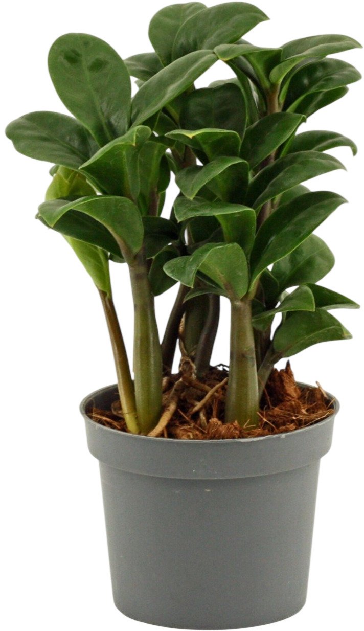 Семейство: Araceae (Ароидные). Происхождение: Выведен в начале XX века в голландском питомнике (оригинатор — NewKup Europe). Является селекционной формой замиокулькаса, закреплённой микроклональным размножением. Внешний вид: Размер: карликовый сорт; в комнатных условиях достигает 40–70 см в высоту. Стебель/рахис: укороченный, утолщённый у основания; междоузлия короткие, что придаёт растению компактность. Листья: сложно‑перистые, состоят из плотных «пёрышек»; глянцевые, с восковым налётом; ярко‑зелёные в молодом возрасте, со временем темнеют до насыщенного зелёного; пёрышки слегка загнуты книзу («кудрявый» эффект); расположены плотно друг к другу. Корневая система: клубнеобразная, накапливает влагу (суккулентный тип). Цветение: редко в домашних условиях; мелкие цветки в початковом соцветии, прикрыты покрывалом.