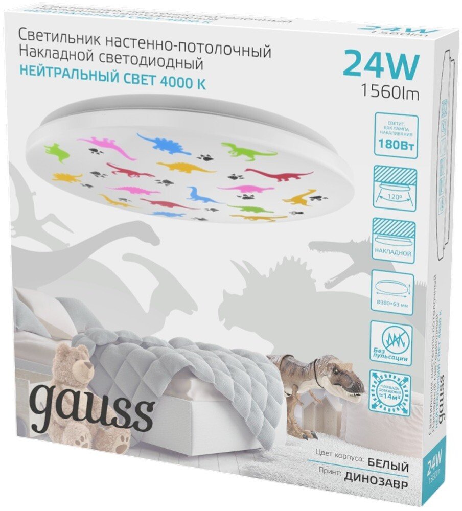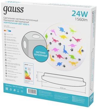 - Светильник светодиодный Gauss накладной 24Вт 1560Лм IP20 4000K круглый (динозавр) 380x63мм